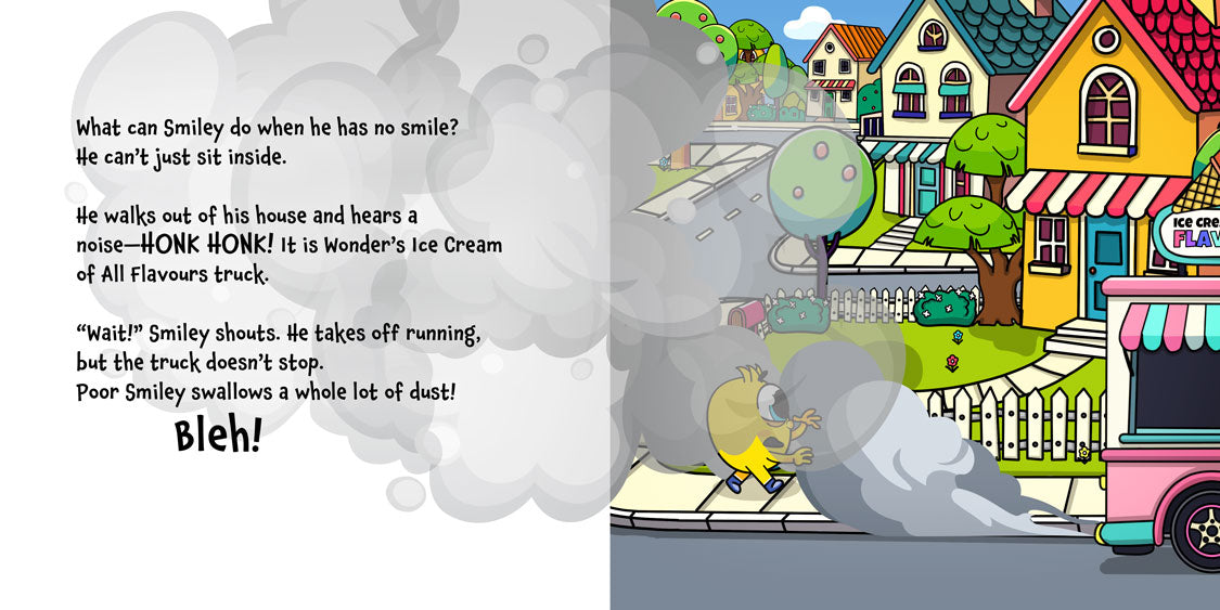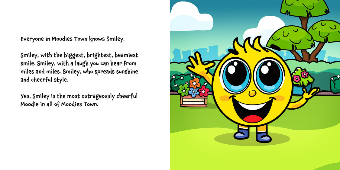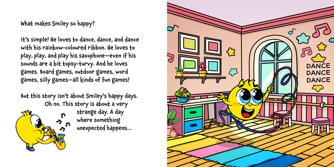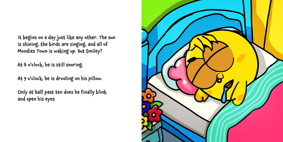 Smiley is the happiest Moodie in all of Moodies Town—famous for his enormous grin, his jolly tea parties, and his rainbow dancing ribbon. But one morning, Smiley wakes up to discover something truly dreadful…his smile is gone!