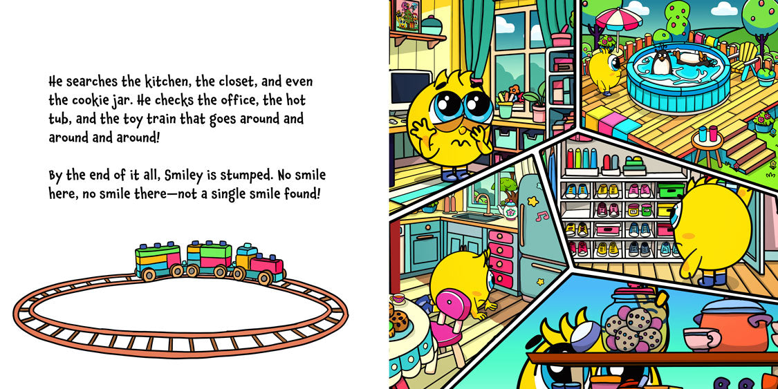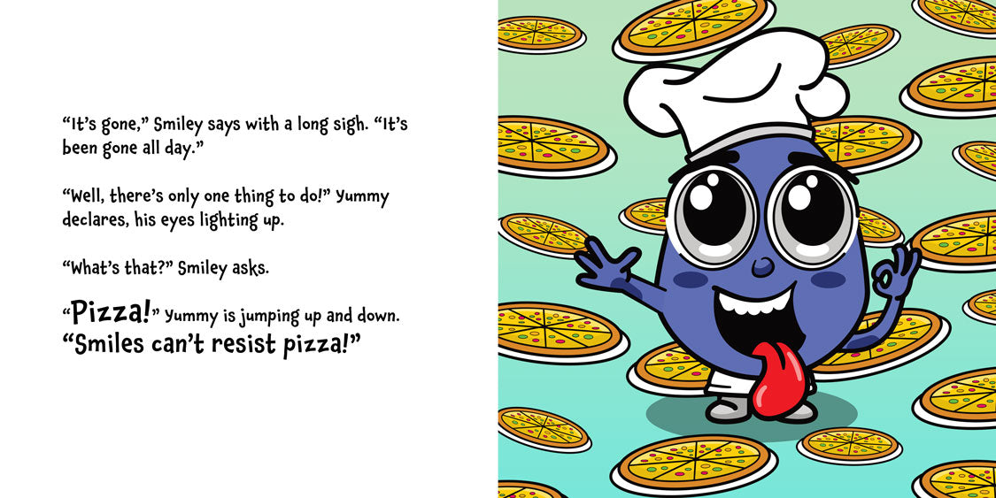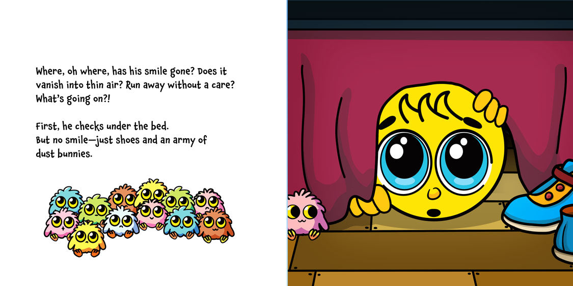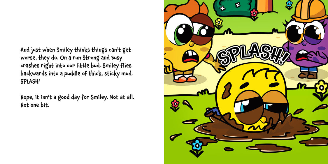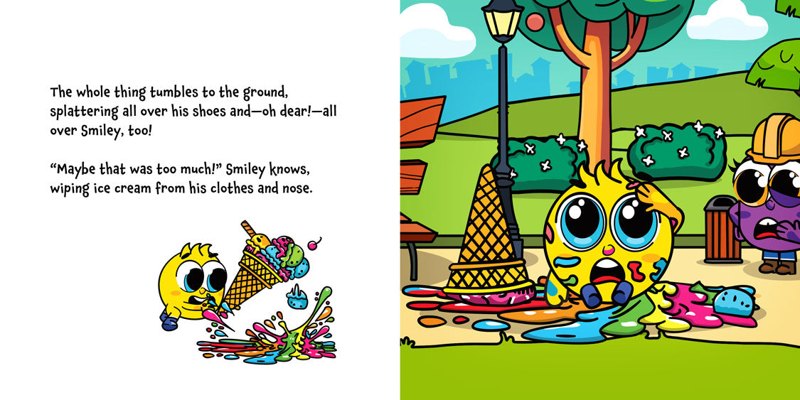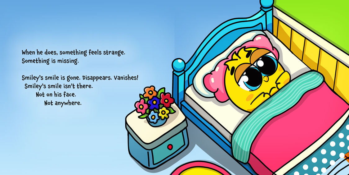 Follow Smiley on a wonderfully wobbly day as he searches everywhere—under the bed, in the cookie jar, at the ice cream truck, even in a mountain of pizza—to find his missing grin. Just when it seems the day can’t get any worse (or any sillier), Smiley discovers that sometimes, the best way to feel better is to let your friends remind you how loved you are.