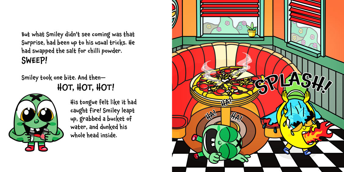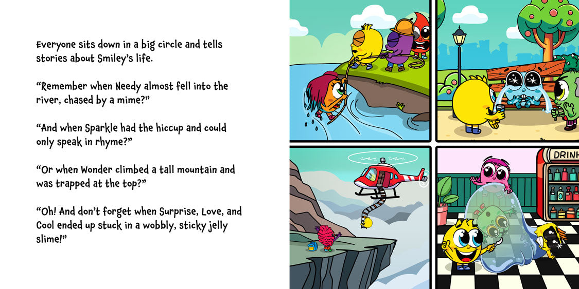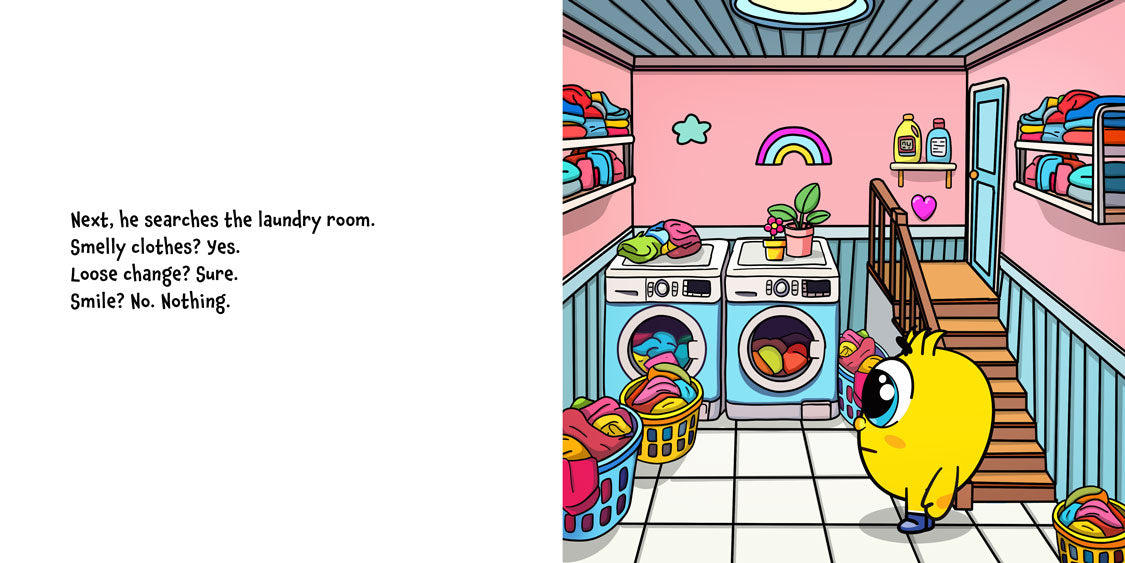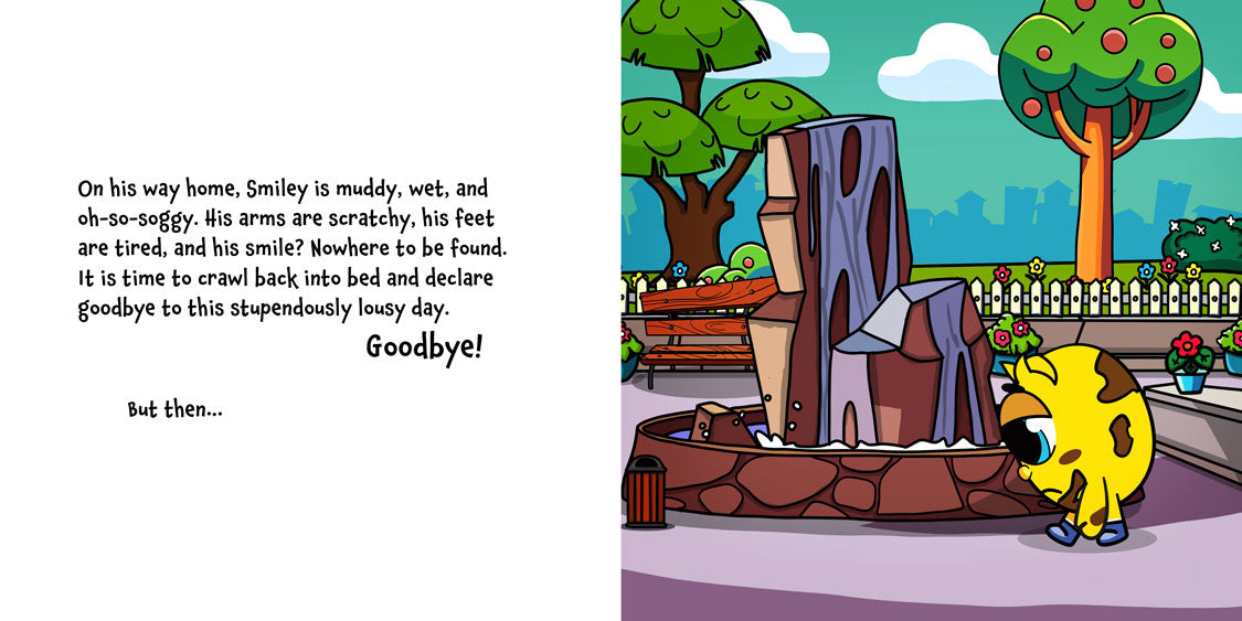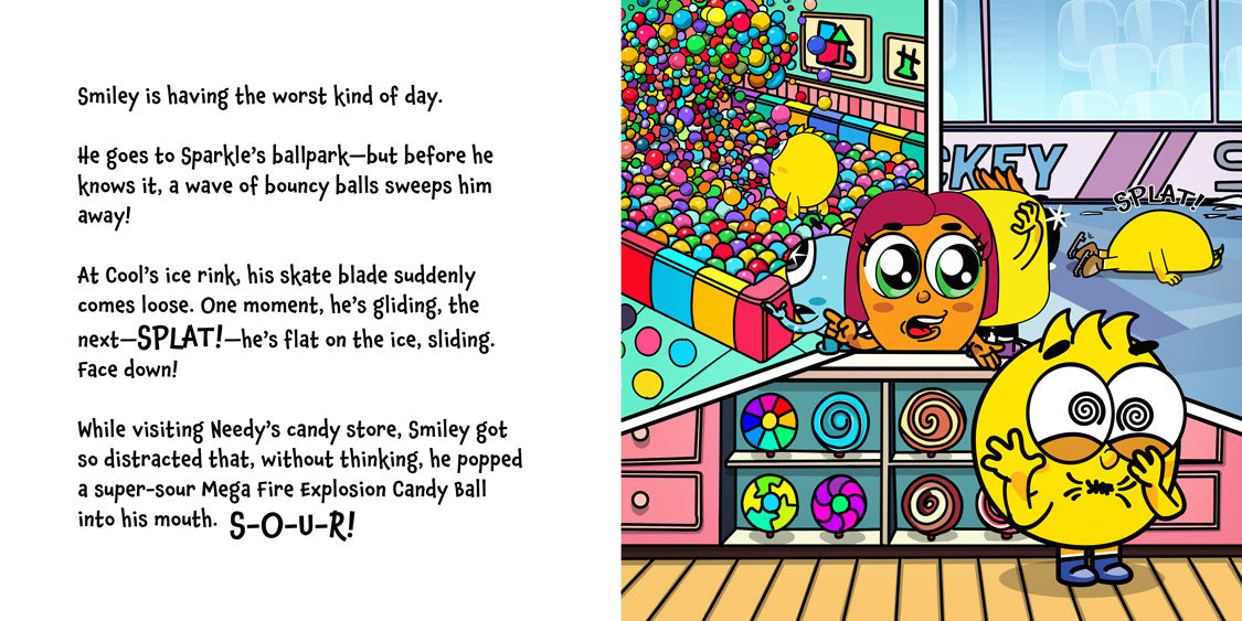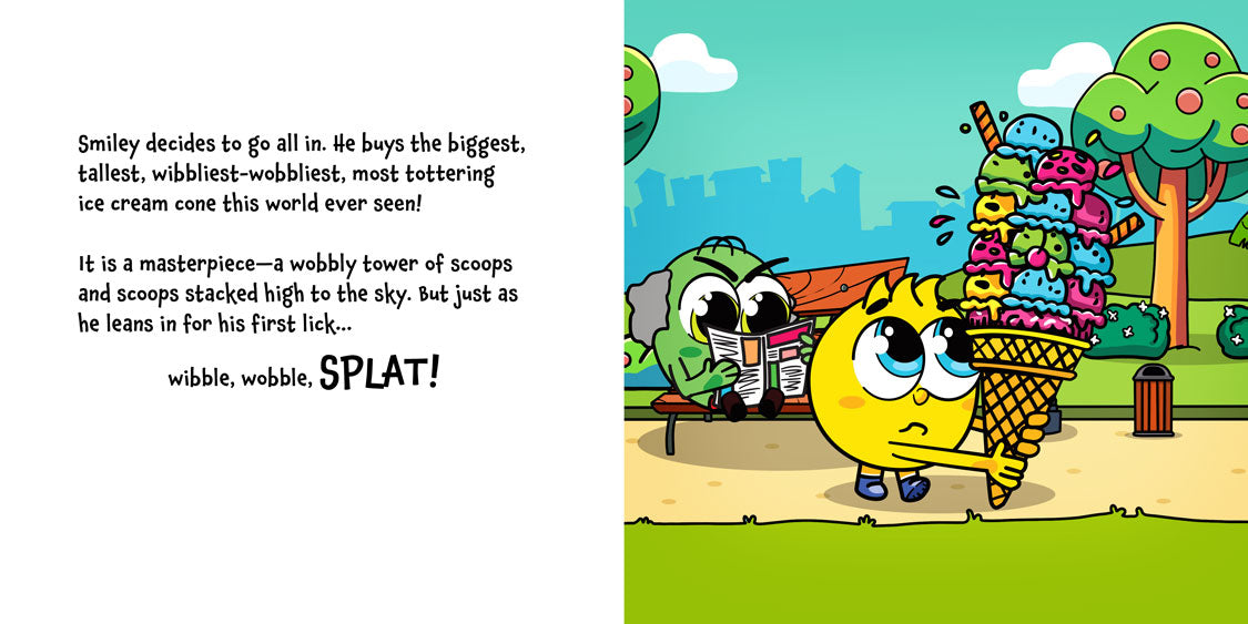 Follow Smiley on a wonderfully wobbly day as he searches everywhere—under the bed, in the cookie jar, at the ice cream truck, even in a mountain of pizza—to find his missing grin. Just when it seems the day can’t get any worse (or any sillier), Smiley discovers that sometimes, the best way to feel better is to let your friends remind you how loved you are.