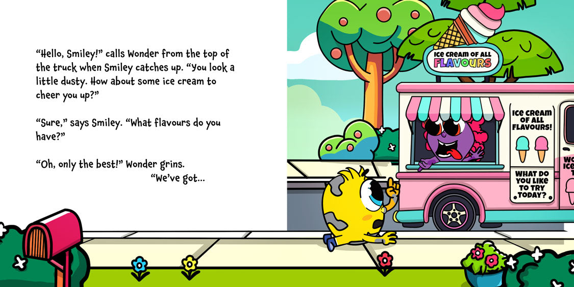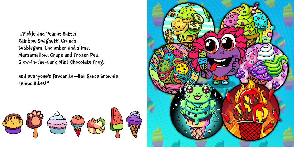 Full of giggles, splashes, and the most fantastical flavours of ice cream you’ve ever heard of, this heartwarming rhyming story is perfect for children who know that even the brightest days can turn a bit gloomy—and that’s perfectly okay.