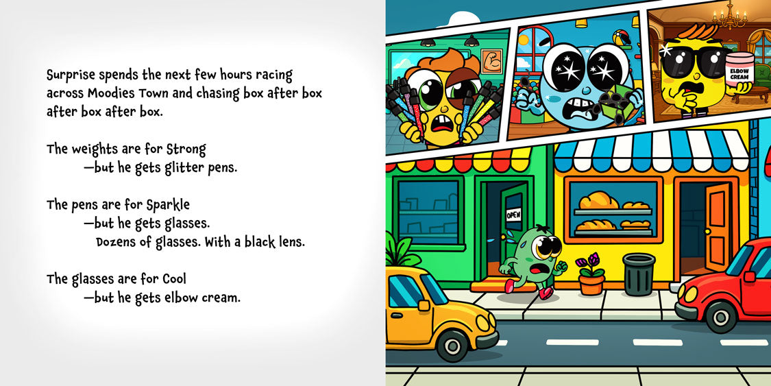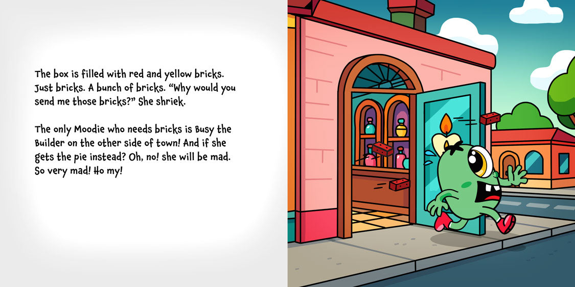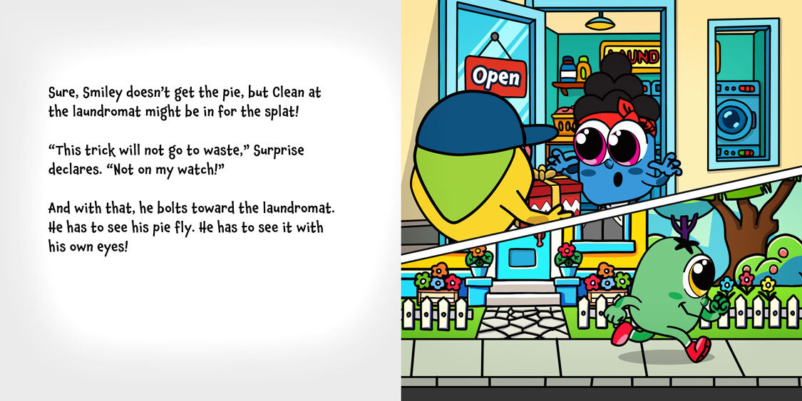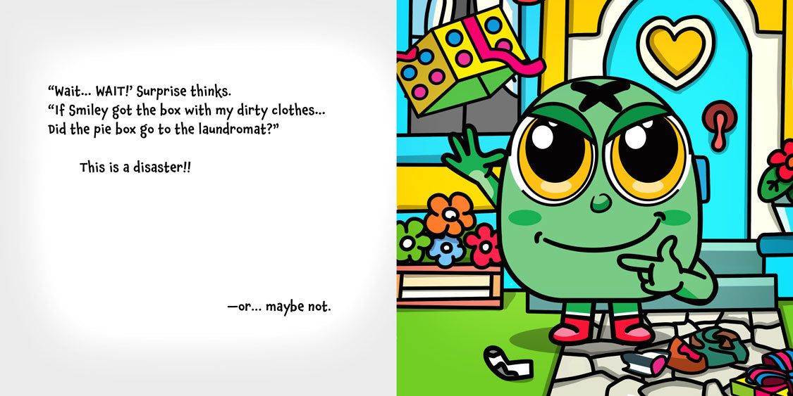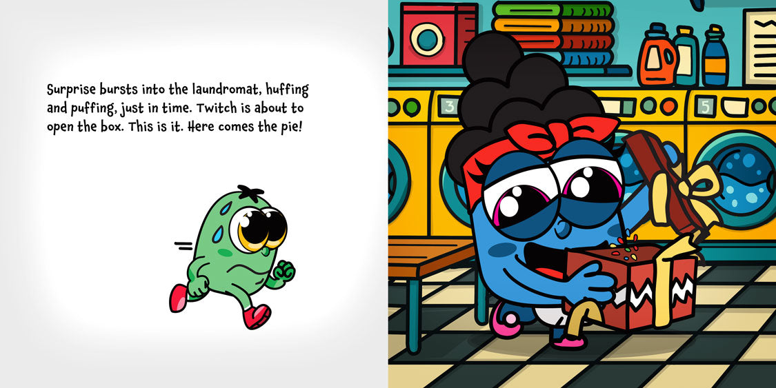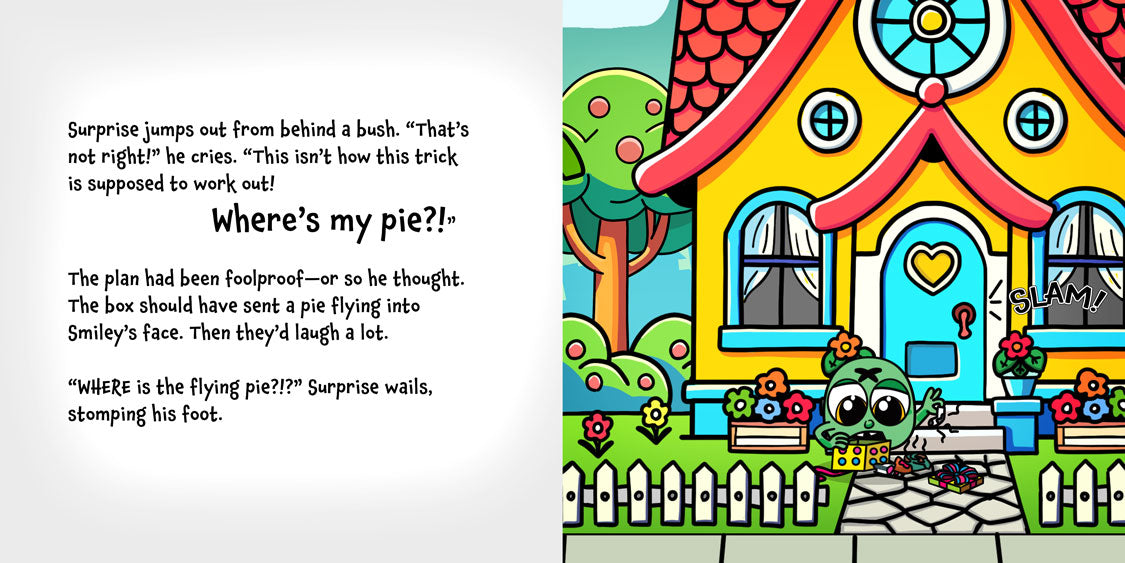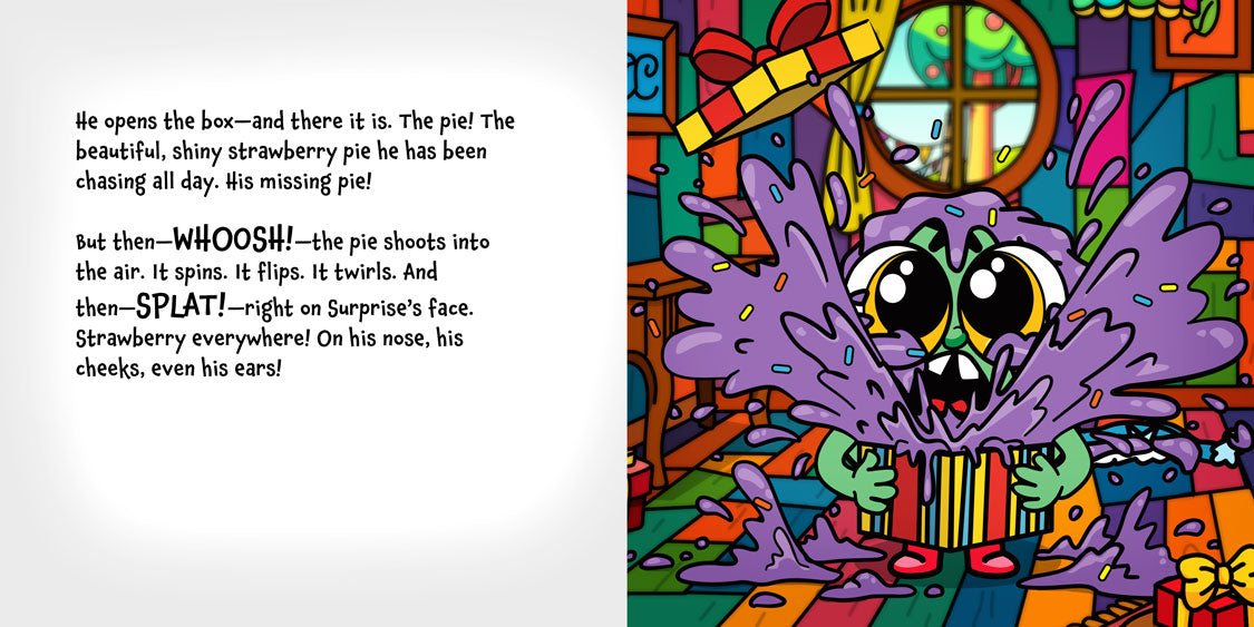 Surprise is the cheekiest Moodie in all of Moodies Town—always plotting, scheming, and dreaming up the silliest tricks. But today he’s got his best prank yet: a pie-in-the-face surprise for Smiley… delivered in a mysterious big box.