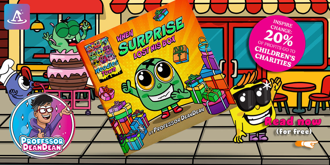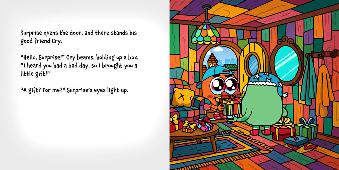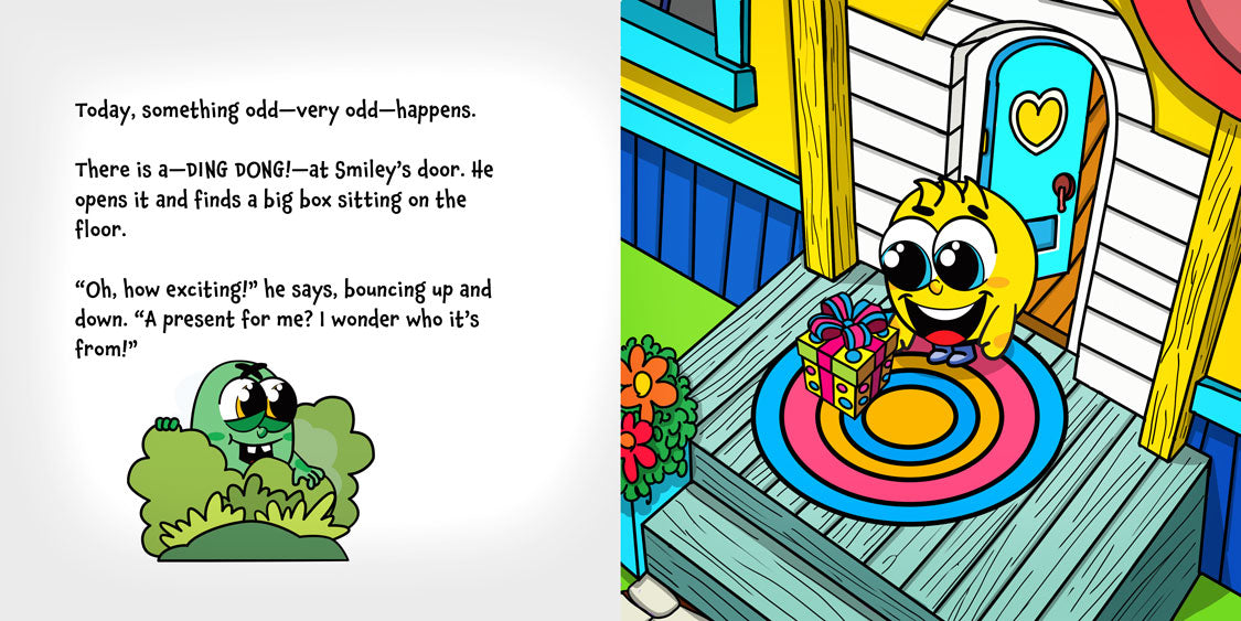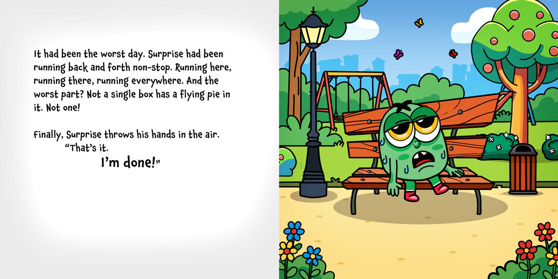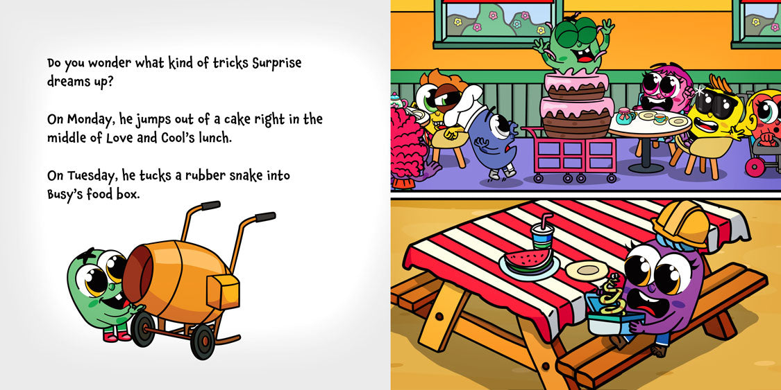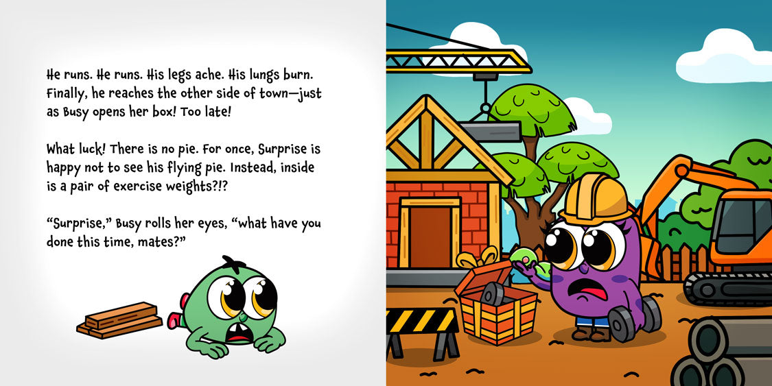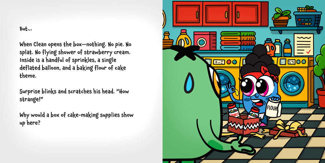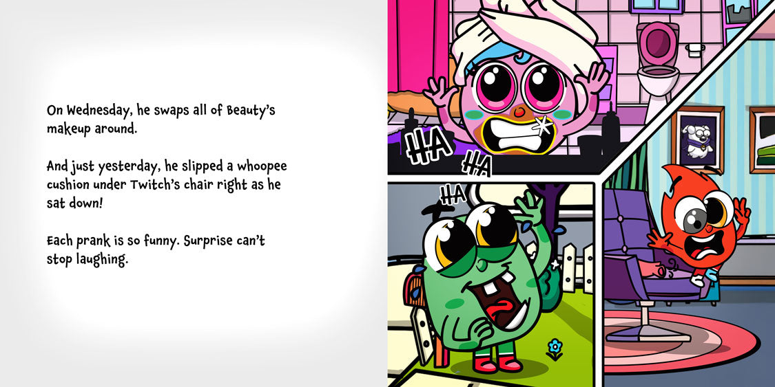 Surprise is the cheekiest Moodie in all of Moodies Town—always plotting, scheming, and dreaming up the silliest tricks. But today he’s got his best prank yet: a pie-in-the-face surprise for Smiley… delivered in a mysterious big box.