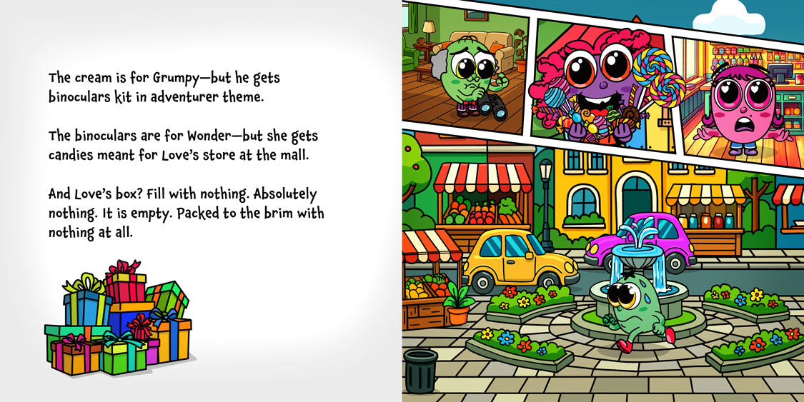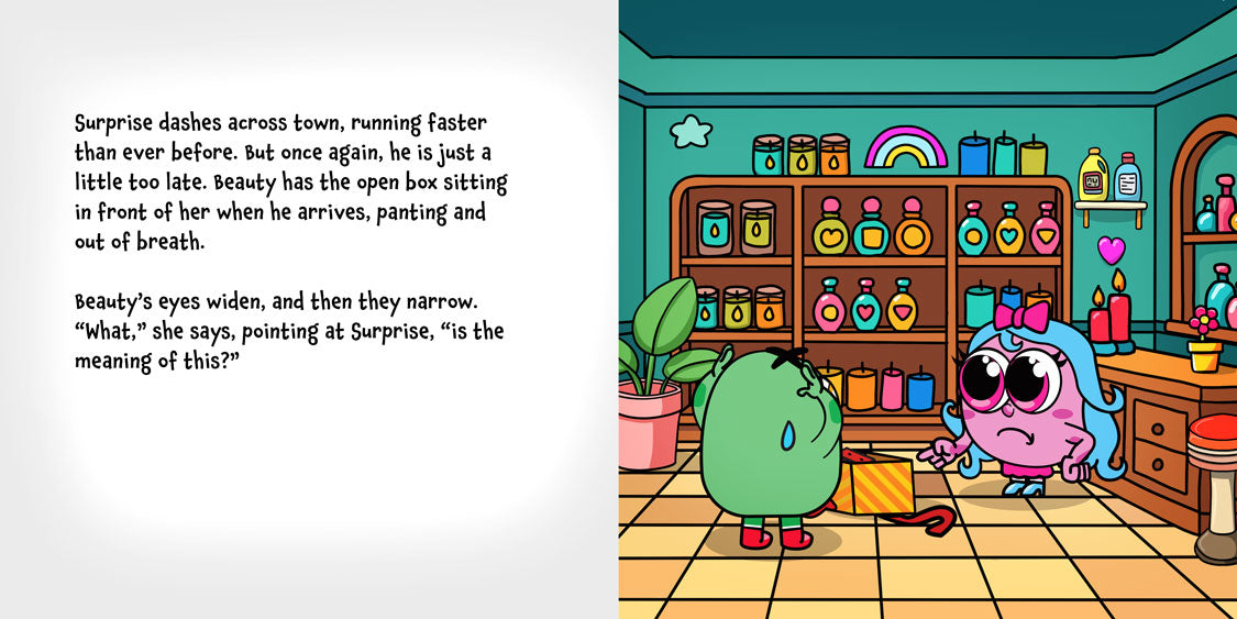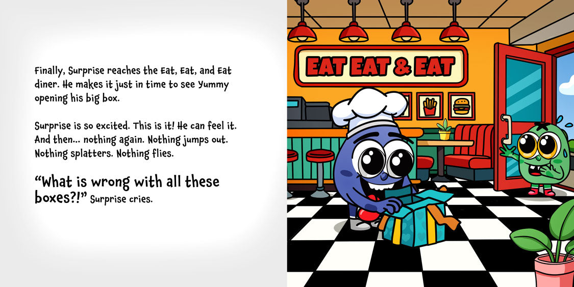 Join Surprise on a mad, laugh-out-loud dash across town as he opens one wrong box after another, trying to find his missing prank before the whole day turns into a gigantic, giggly mix-up. With bright, bold illustrations and bouncy, read-aloud-friendly rhyme, this story is packed with surprises, friendship, and just the right amount of mischief.