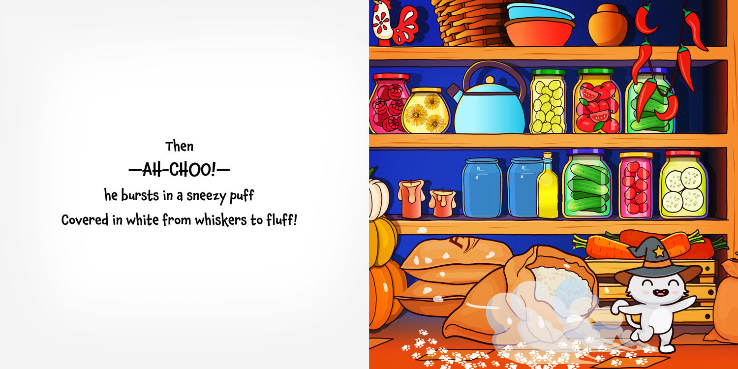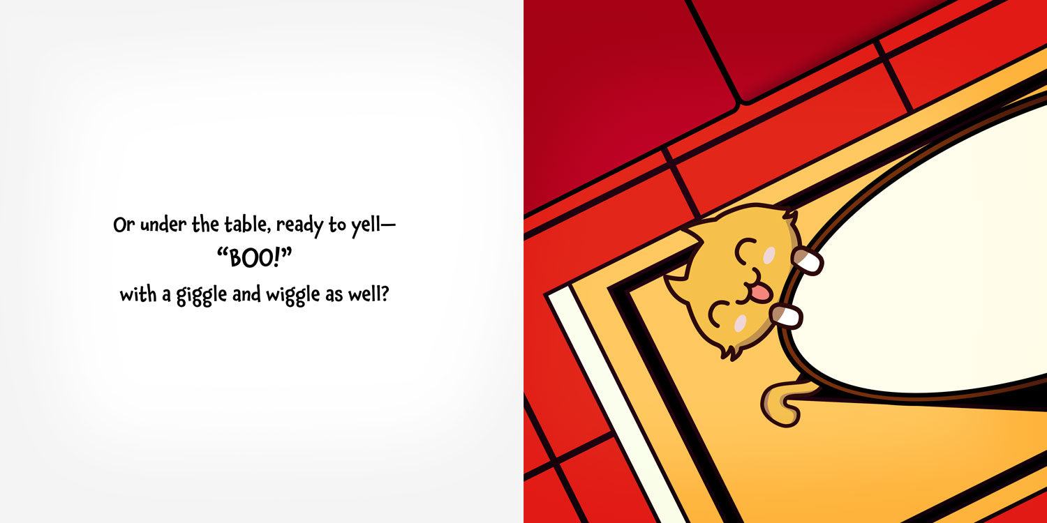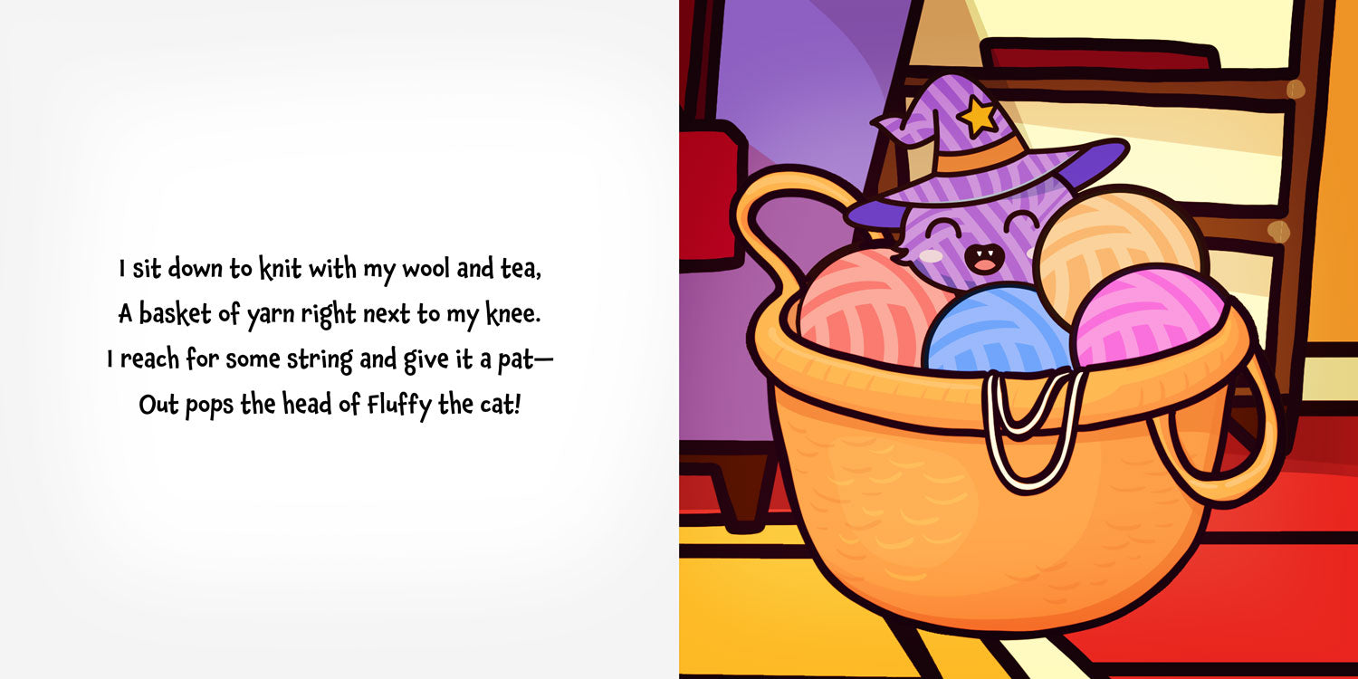 Fluffy the cat loves one thing more than anything… hiding! From the yarn basket to the garden bed, the bag of flour to the postman’s sack, this cheeky, hat-wearing cat is a master of sneakiness. But can YOU spot him before he pops out with a surprise?