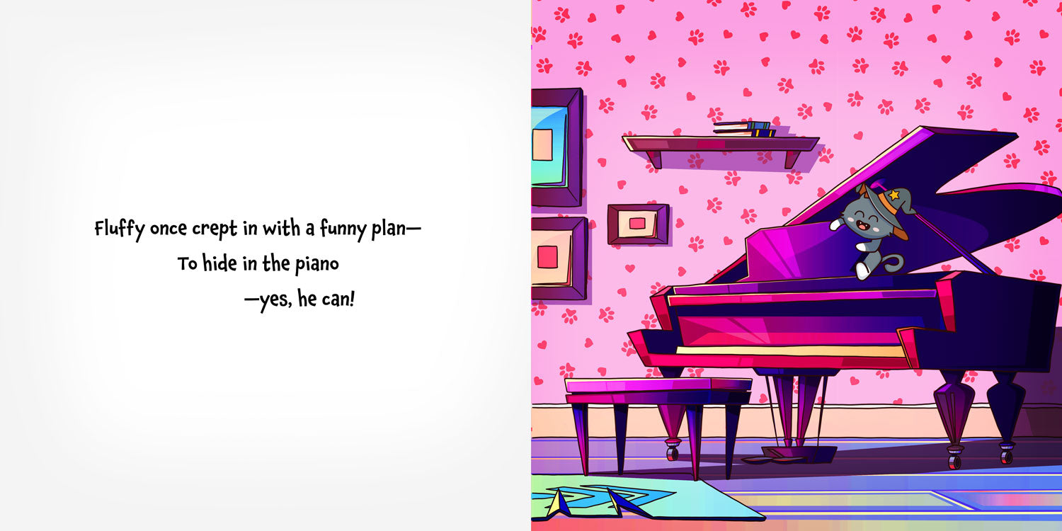 Perfect for toddlers, preschoolers, and early readers, Where’s Fluffy? is a playful, rhyming picture book packed with silly surprises and mischievous fun. Young children will giggle along as they turn the pages, trying to guess where Fluffy will pop up next.